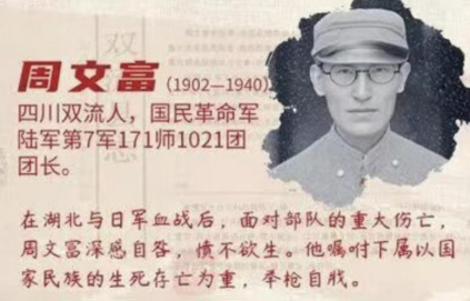 As the leader of this military operation, Zhou Wenfu deeply felt self blame and left a suicide note in the early morning of April 12th, urging him to prioritize the interests of the country and the nation, persist in resisting Japan, and bravely kill the enemy. He then took his own life with a gun, sacrificing himself for the country at the age of only 37. His remains are buried on a hill in Hubei province.